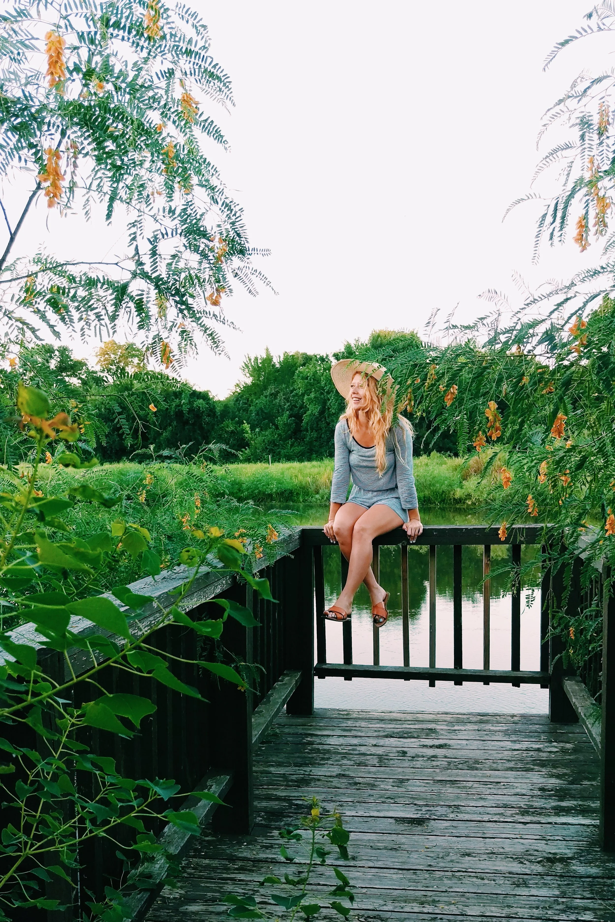 The air is always cooler in the mornings and there is less heat coming off the ground. I find that when I visit my parents house, I have the luxury of being able to walk out to this lovely spot on a dock overlooking a small pond. I usually bring my journal or a book to read while I sit there watching the fish bite in the water. It's one of my favorite places to be in and rarely do I run into anyone while I'm out there at dawn.