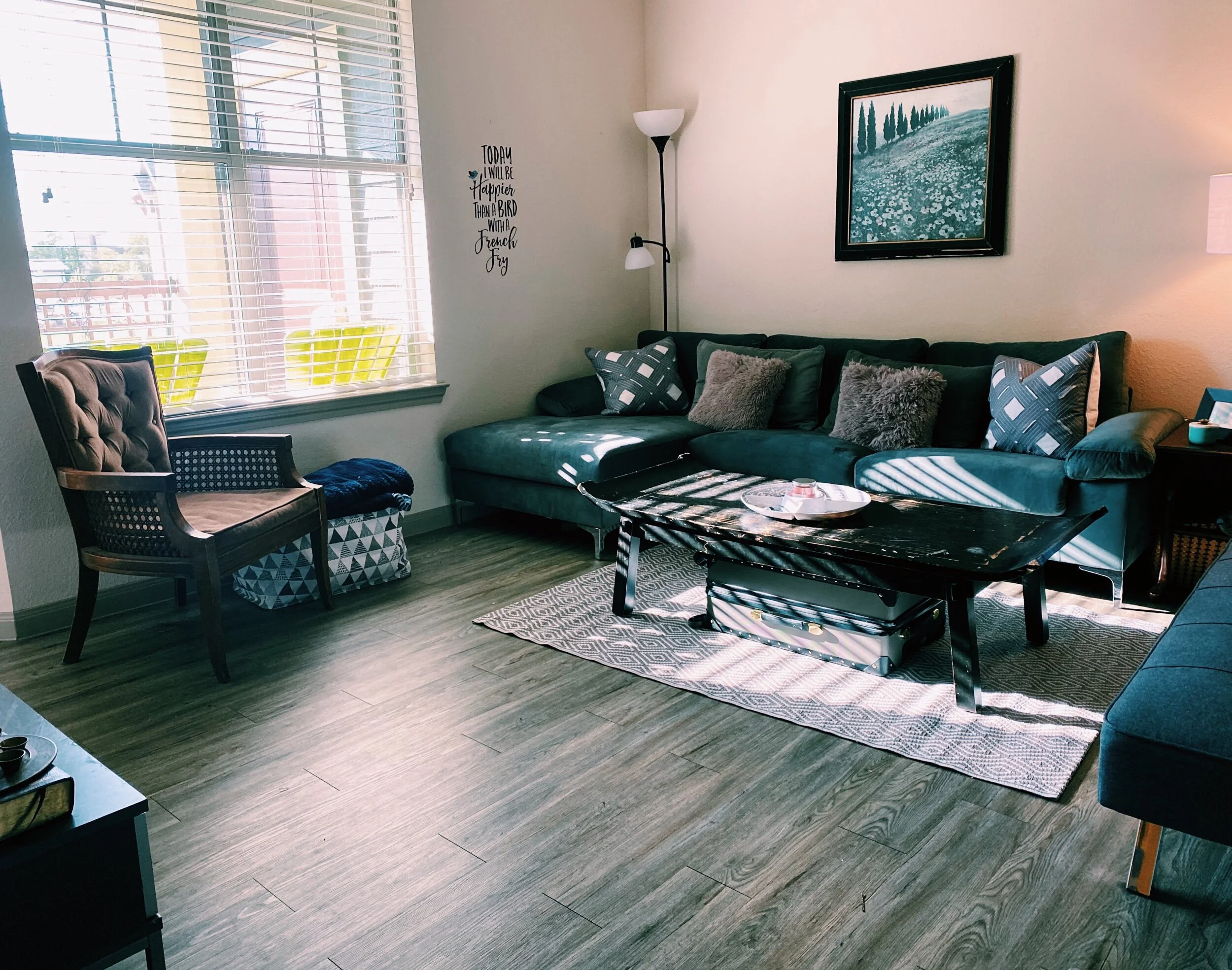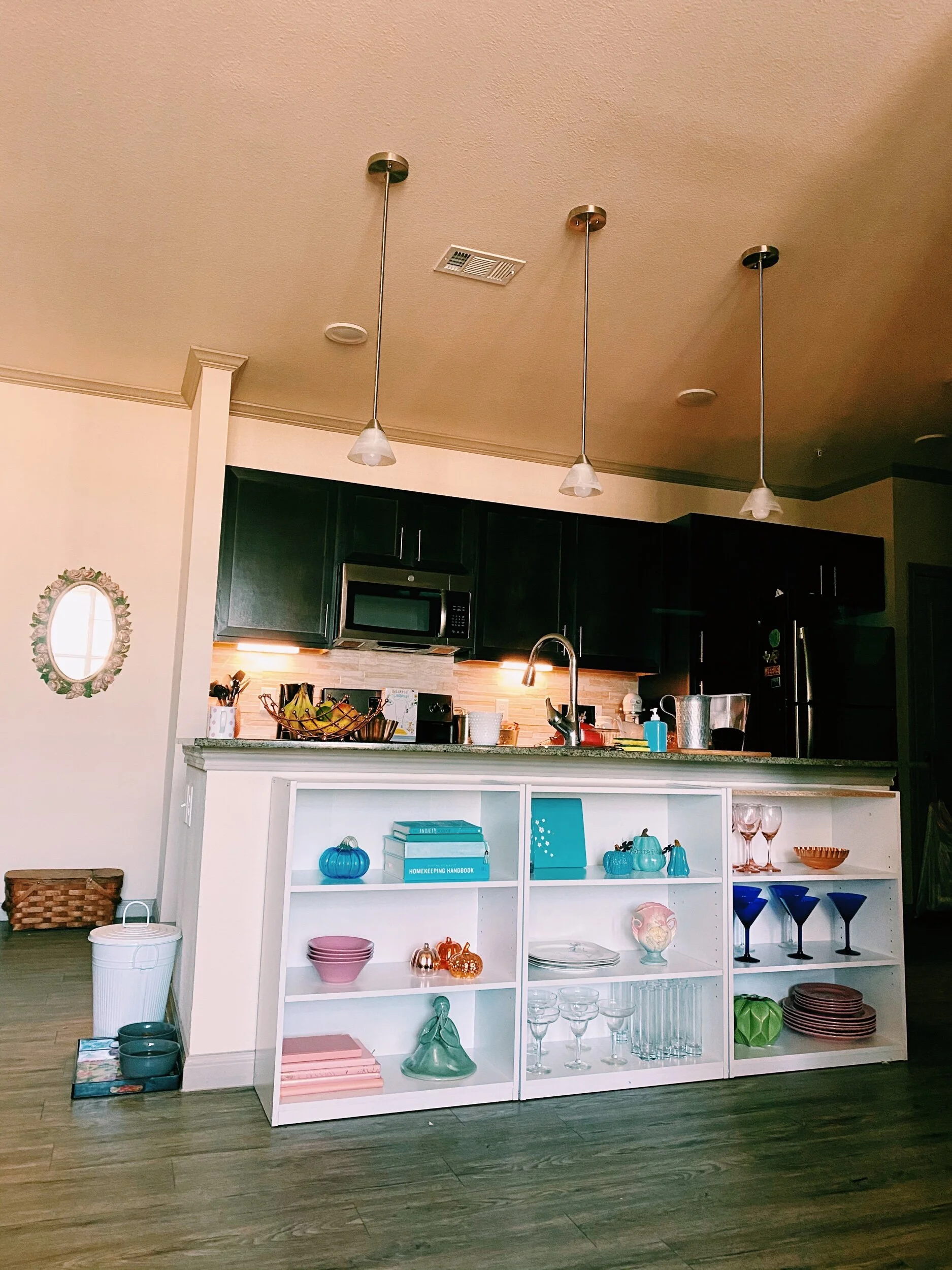 It’s been a place full of growth and discovery. A home filled with peace and love. I believe we are products of our environment and I sought to create a place for Skyler and myself to flourish in! From Covid to working from home to homeschool This is where all the magic happened that created the life we have now I will be forever grateful for these memories and the life we created one day at a time. The apartment is three beds and two full baths with high ceilings and beautiful granite and stone textiles. I love how much light is throughout the day! Although the space evolved over this past year, I tried to carry the same look and feel throughout the space - whimsical, chic, and feminine.