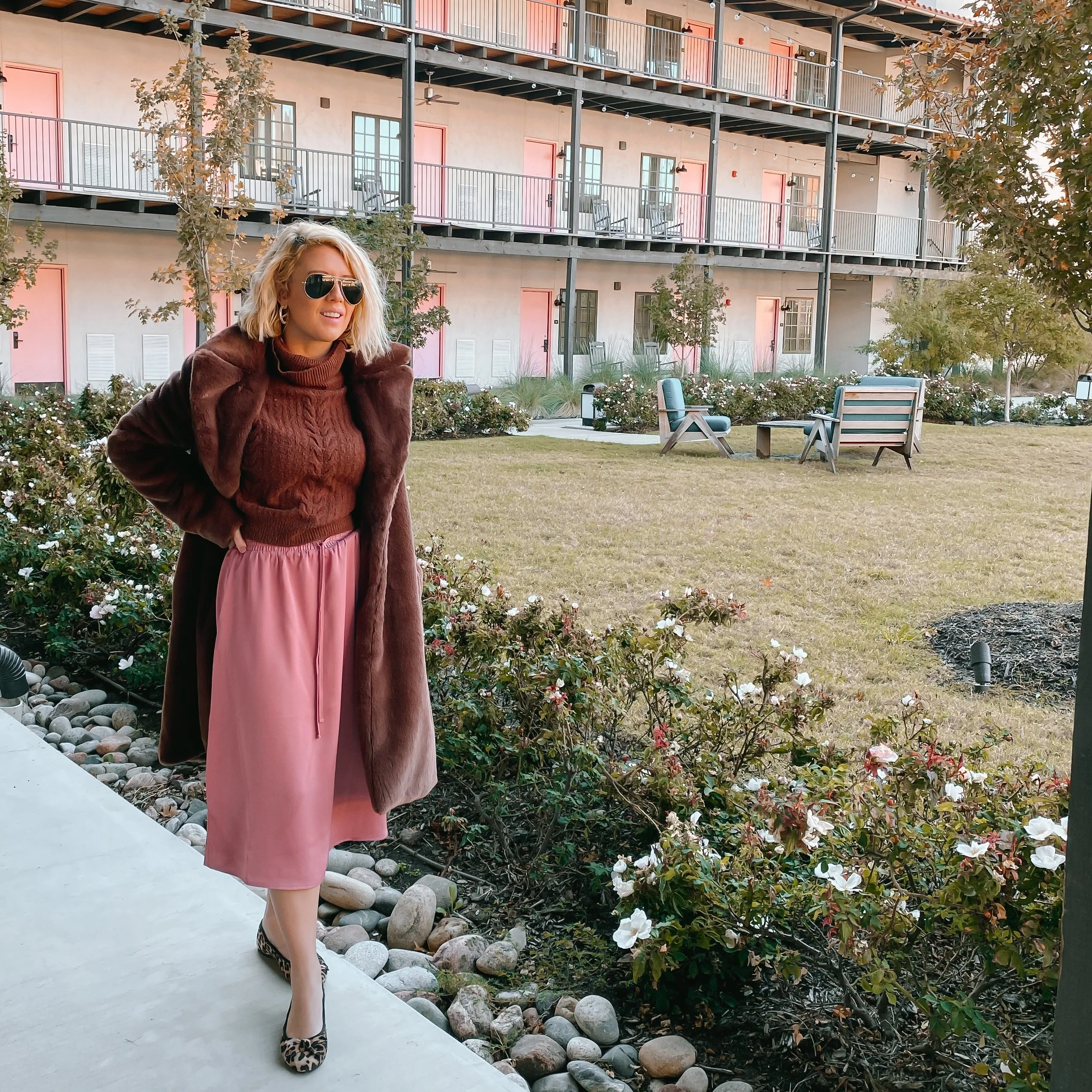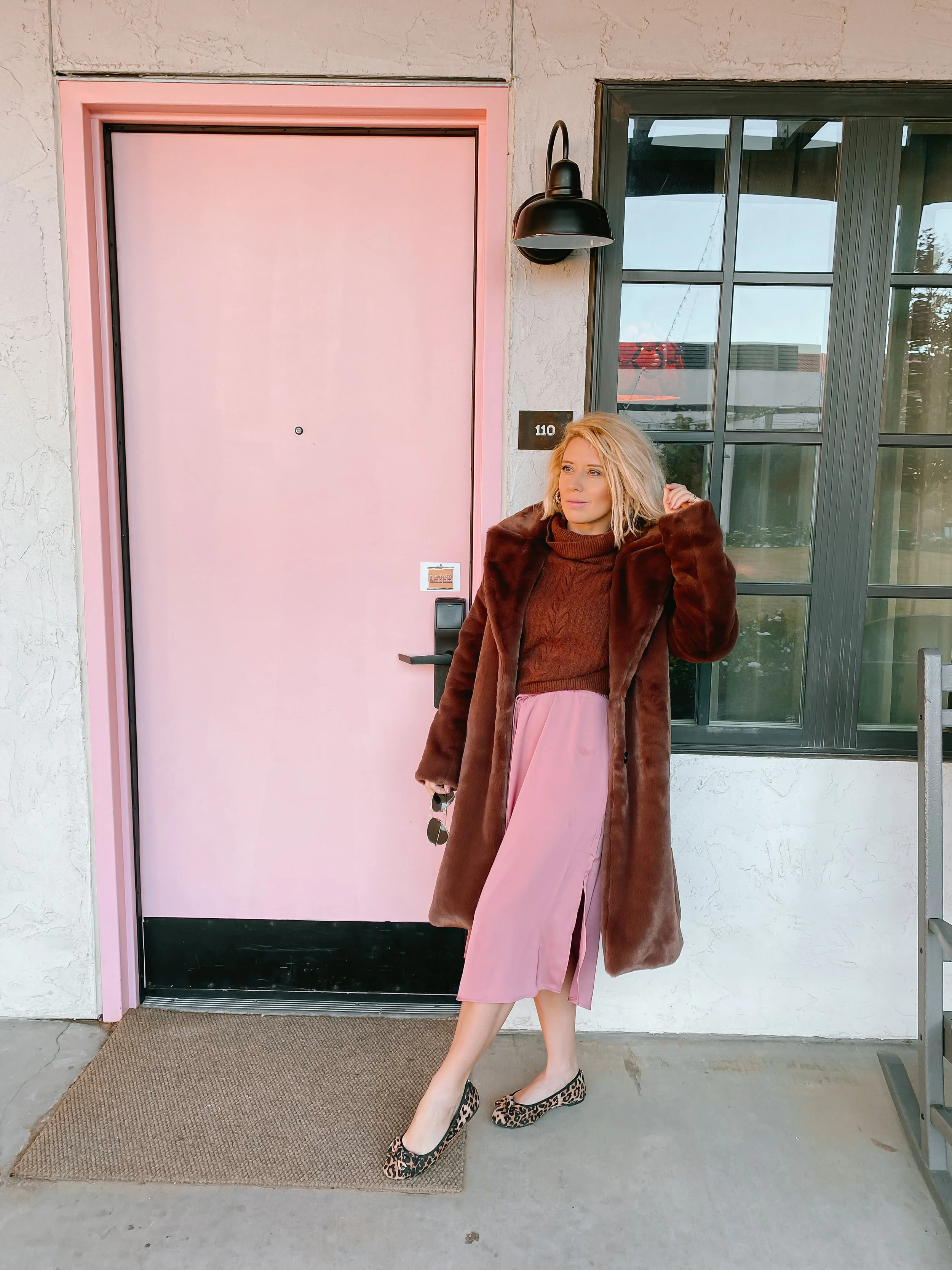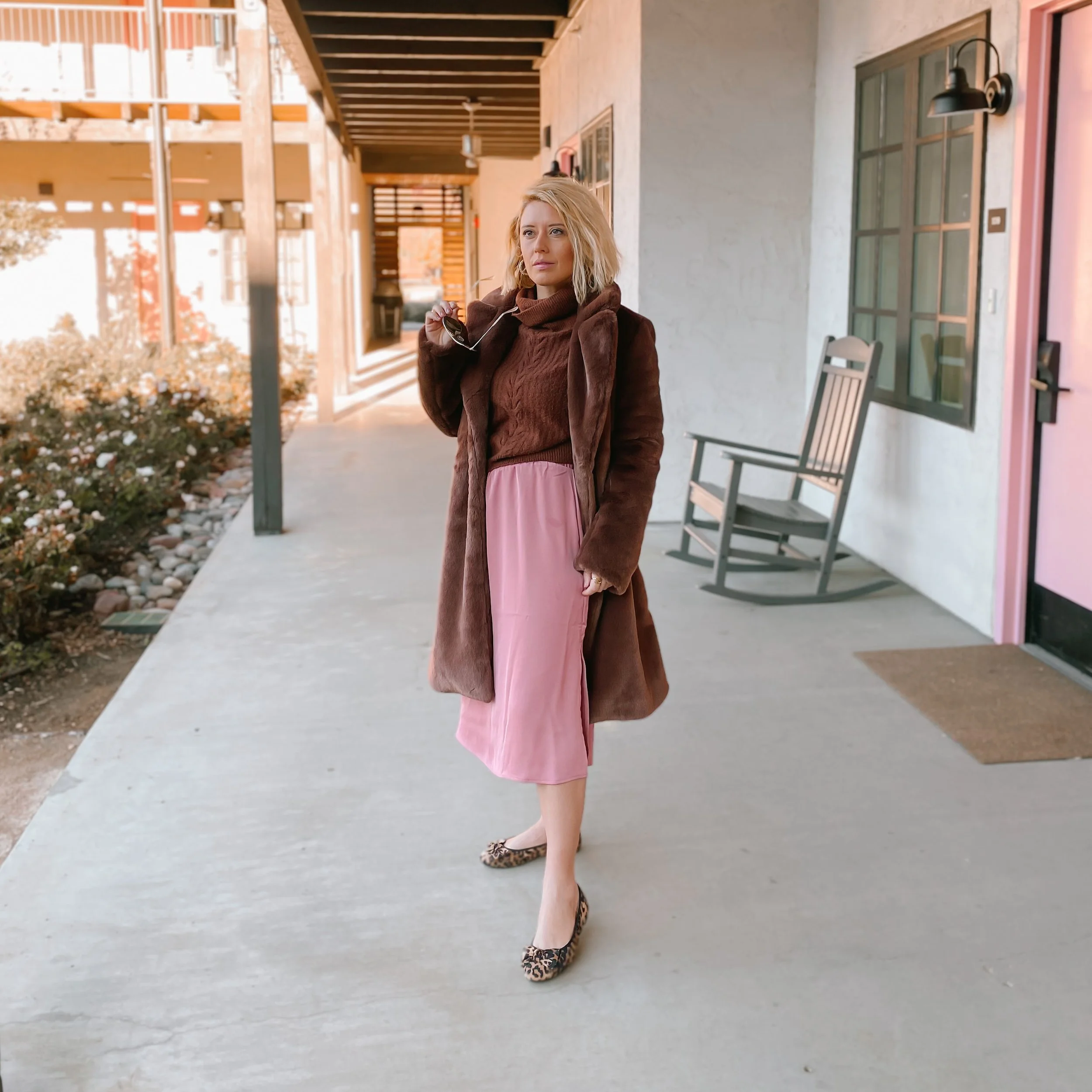 Slip skirts are in my opinion an undervalued item. Most people don’t own one and they are such a versatile piece. You can wear with tights, a sweater, and boots for the Winter and then in Spring/Summer pair with a blouse, shell or even a cami and flat sandals. The key is to find a skirt that skims the body’s shape without being too tight. I picked this one up (on clearance now!) before Christmas at Target in-store. It came in both a deep teal and this rosy shade of pink. I love the way it pairs with brown like this plush coat from Amazon the Drop and a pair of leopard ballet flats. Just adorable! I’ve rounded up several options for silky slip skirts that are under $100 below! Happy Shopping!