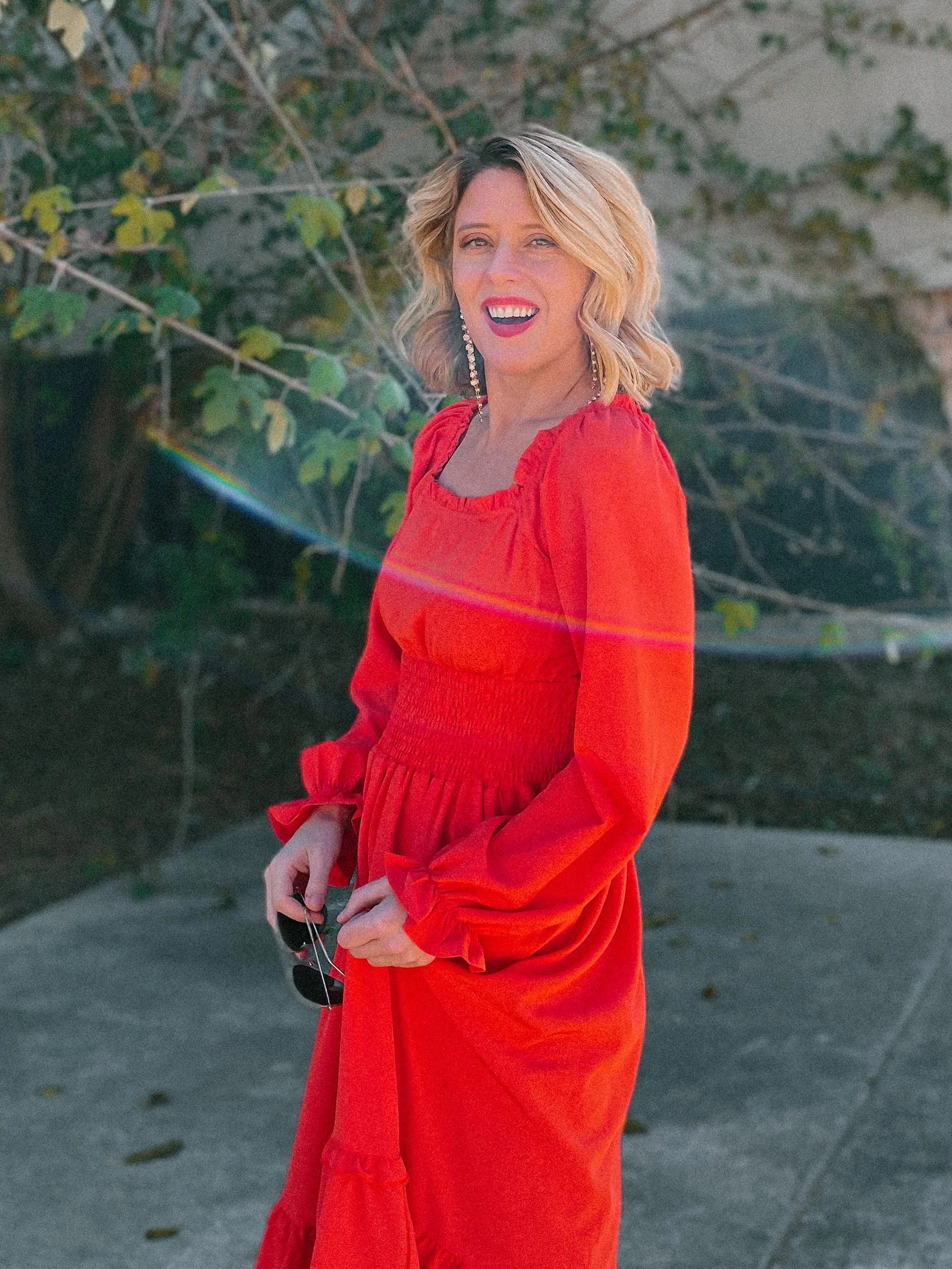 Dress: Missky on Amazon // Shoes: Sarah Flint (save $50 using this link) // Earrings: Park Lane Jewelry // Lipstick: Younique in Red Over Heels // Sunglasses: Ray-ban