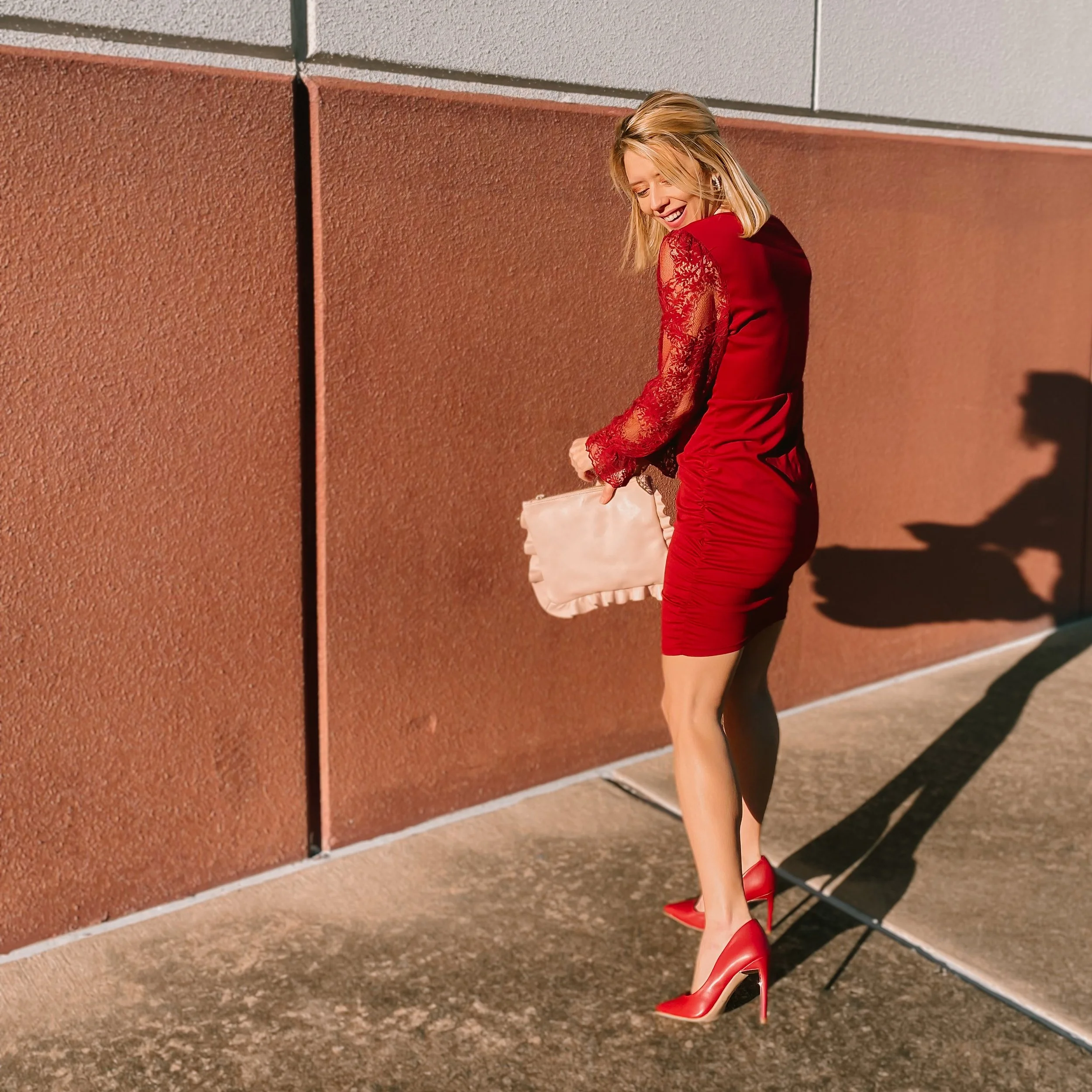 I hope you guys are having an incredible week so far. Can you believe 2022 is just days from being over? I’ll be doing some recaps shortly but wanted to share a quick 30 Days of Outfits post. I paired this gorgeous burgundy dress with matching burgundy pumps from Jenn Ardor. I love the lace sleeves on this form-fitting dress made out of the softest cotton. The sleeves are comfortable and this look is perfect for Valentine’s Day which will literally be right around the corner. I wore it with a pair of gold filagree hoops from Kendra Scott and threw on this cream coat from HM. Such a timeless and classic look! This outfit is also perfect for being a wedding or event guest, a gala, and a date! You can shop the entire look here!