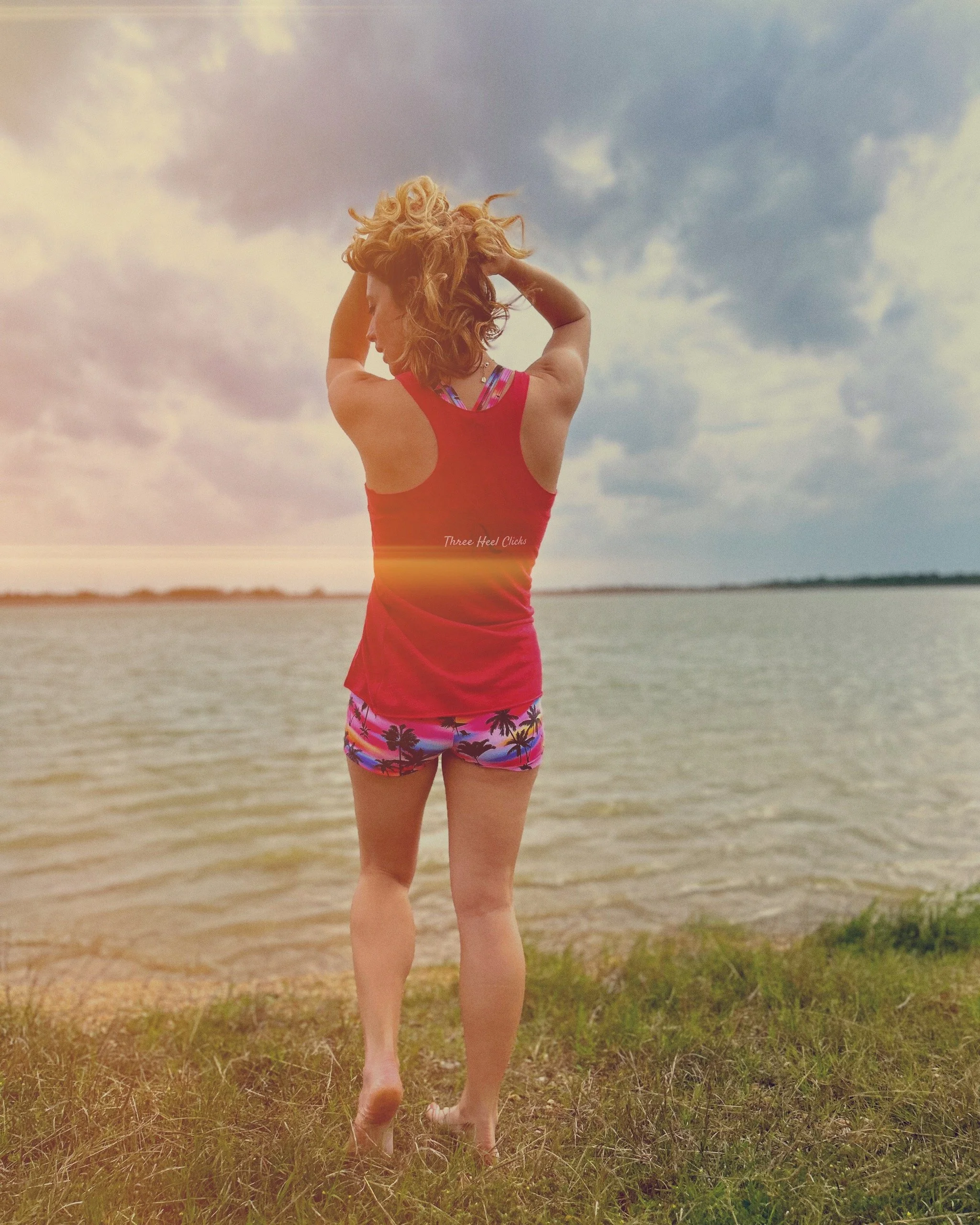 The tank top was inspired by a time of my life when I was learning how to live from sun up to sun down. I was going through depression, anxiety, PTSD, and panic disorder trying to navigate sobriety and huge life changes. There were many moments where the only hope I had were the words, “keep going.” The idea is to take baby steps until you get to where you want to be in life. Keep going no matter what. Keep taking action even when everything seems like it’s on fire. Keep moving forward even if it’s a small shaky baby step. You can do hard things and you can keep going no matter what. I am so thankful for each of you and cannot wait to see what the clothing looks like on you! Make sure to tag @threeheelclicks and use the hashtag #youcandohardthings when you post on social.